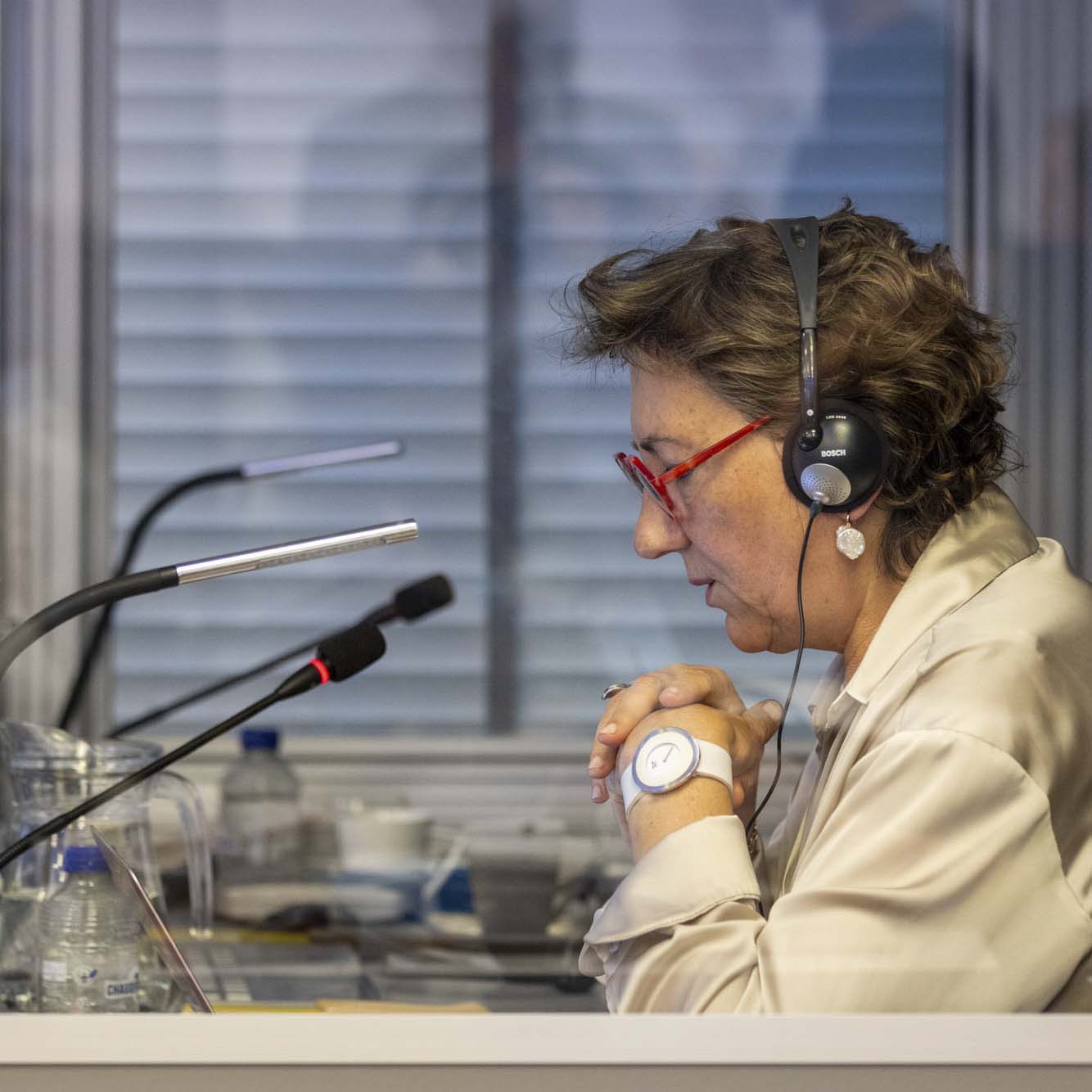 In simultaneous interpreting, interpreters often work from a soundproof booth, observing and listening to the proceedings while interpreting in real time. Participants can listen in their preferred language via headphones or online.